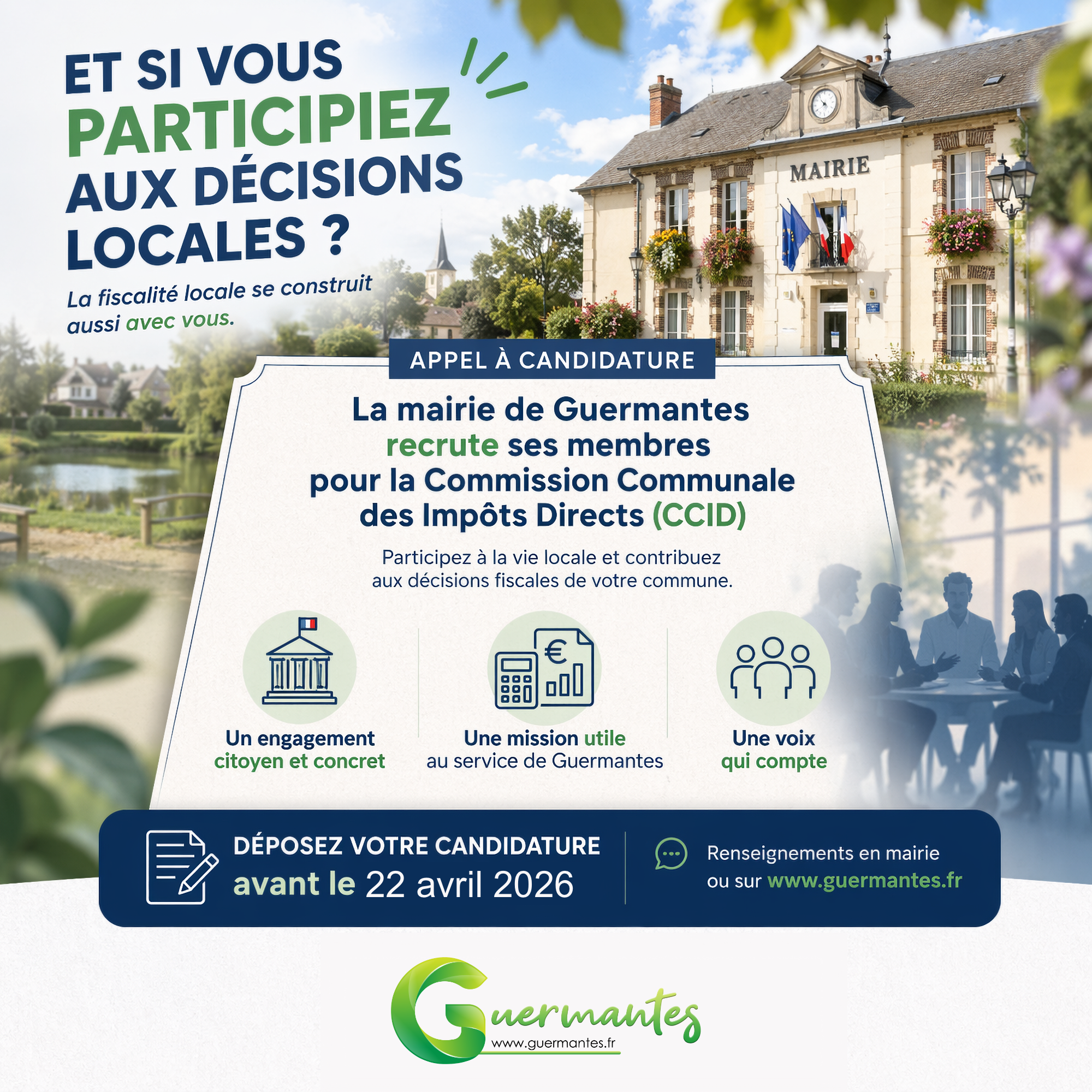 Envoyez votre candidature avant le 22 avril 2026 à accueil@guermantes.fr