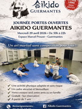 L'association Aïkido Guermantes propose une journée portes ouvertes le mercredi 29 avril 2026 de 10h à 22h à l'EMP pour vous faire découvrir cet art martial sans compétition pour tous.