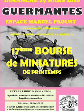 L'association "A la recherche des Autos Perdues" organise sa 17ème Bourse de Miniatures de Printemps le dimanche 29 mars 2026 de 8h30 à 15h à l'Espace Marcel Proust.