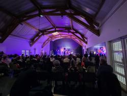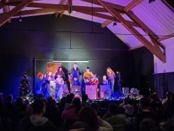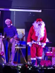 Un personnage tout vêtu de rouge, à la longue barbe blanche s'est invité à la fête : le Père Noël. Il a remis avec l'aide de ses lutins et de Mme la Maire un sachet de figurines chocolatées. Il a écouté les souhaits des petits et a posé comme il se doit pour la traditionnelle photographie souvenir. Il s'ensuivit un goûter gourmand autour d'un chocolat chaud traditionnel "fait maison", de diverses sucreries, sans oublier les pains au chocolat tout juste sortis du four du boulanger de la commune : un régal ! Une jolie parenthèse enchantée, magique, colorée et de partage autour des enfants en cette période de fêtes. Un grand merci aux lutins élus pour l'organisation et au Père Noël pour sa visite surprise.