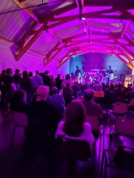 Dénichez un groupe de 6 musiciens entourés de 2 chanteuses, tous passionnés de soul, de groove et de pop rock : NAT 6. Mettez à disposition une grande salle disposant d'un espace de danse, d'une scène l'Espace Marcel Proust. Proposez en première partie un tout autre voyage autour de Boris VIAN et du jazz manouche puis secouez le tout et vous obtiendrez une soirée haute en couleurs, rythmée dans une salle comble remplie d'applaudissements, de pas de danse et ceci durant 2h le 22 novembre dernier. Quelle ambiance !