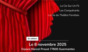La municipalité de Guermantes et la compagnie les Z'improbables vous proposent de venir découvrir le Festival en Scène et Marne le 8 novembre 2025 à l'Espace Marcel Proust. 3 pièces de théâtre vous attendent avec de nombreux comédiens.