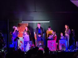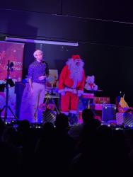 Un personnage tout vêtu de rouge, à la longue barbe blanche s'est invité à la fête : le Père Noël. Il a remis avec l'aide de ses lutins et de Mme la Maire un sachet de figurines chocolatées. Il a écouté les souhaits des petits et a posé comme il se doit pour la traditionnelle photographie souvenir. Il s'ensuivit un goûter gourmand autour d'un chocolat chaud traditionnel "fait maison", de diverses sucreries, sans oublier les pains au chocolat tout juste sortis du four du boulanger de la commune : un régal ! Une jolie parenthèse enchantée, magique, colorée et de partage autour des enfants en cette période de fêtes. Un grand merci aux lutins élus pour l'organisation et au Père Noël pour sa visite surprise.