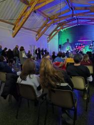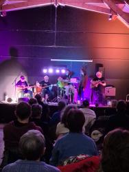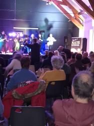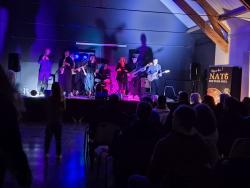 Dénichez un groupe de 6 musiciens entourés de 2 chanteuses, tous passionnés de soul, de groove et de pop rock : NAT 6. Mettez à disposition une grande salle disposant d'un espace de danse, d'une scène l'Espace Marcel Proust. Proposez en première partie un tout autre voyage autour de Boris VIAN et du jazz manouche puis secouez le tout et vous obtiendrez une soirée haute en couleurs, rythmée dans une salle comble remplie d'applaudissements, de pas de danse et ceci durant 2h le 22 novembre dernier. Quelle ambiance !